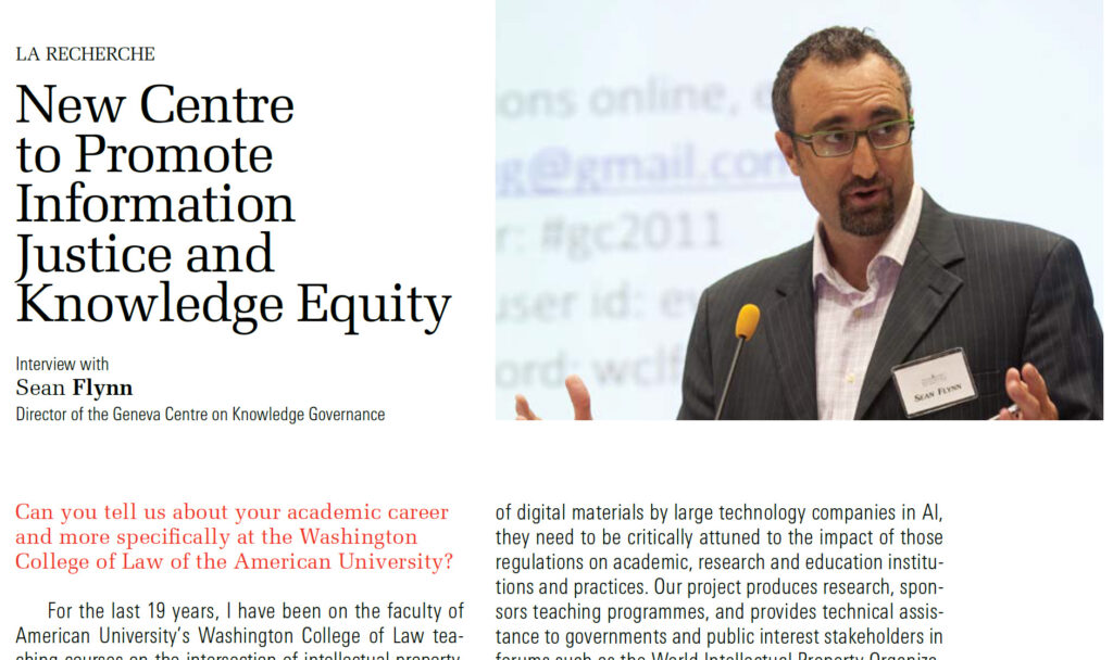 Sean Flynn, Director of the Centre on Knowledge Governance was featured in GLOBE #36, the review of the Geneva Graduate Institute.