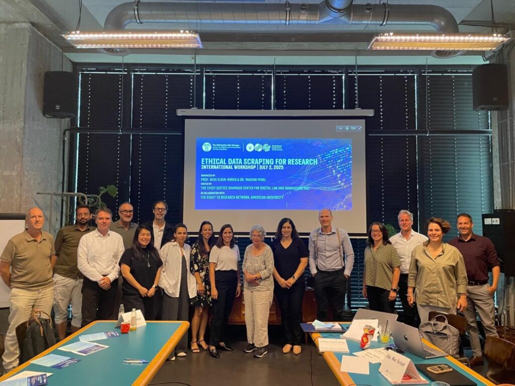 A unique, expert-led workshop on ethical data scraping was organized by Professor Niva Elkin-Koren and Dr. Maayan Perel and hosted by the Shamgar Center of Digital Law and Innovation, Tel Aviv University. The workshop was made possible by the generous support of the Right to Research in International Copyright Law coalition at the American University, especially Professor Sean Flynn, the Director of the Program on Information Justice and Intellectual Property (PIJIP).